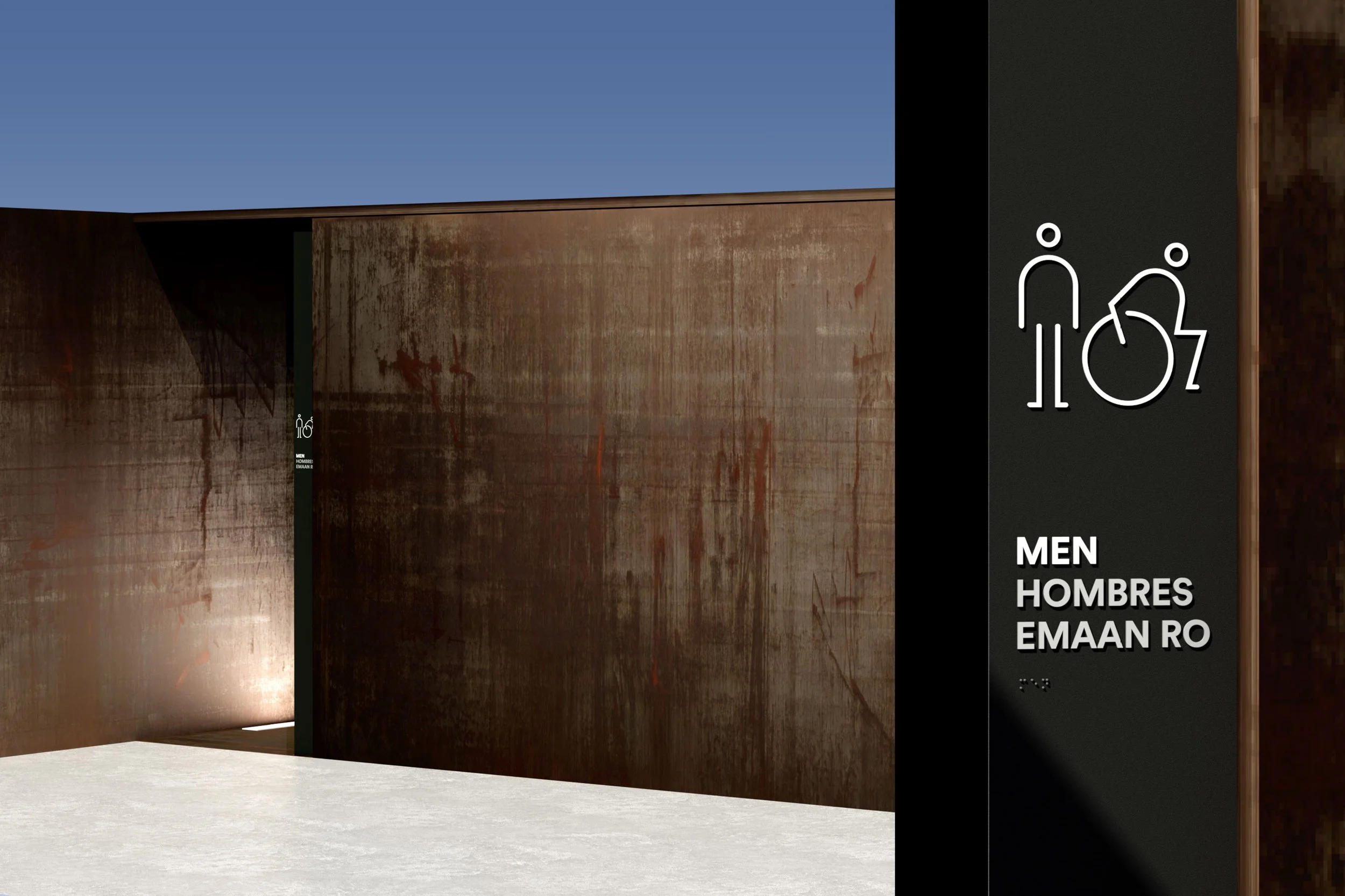 Span, led by John Pobojewski, designed the signage, wayfinding, and placemaking in close partnership with Spackman Mossop Michaels and Trahan Architects. Using natural materials and seamless integration with the landscape, the signage quietly complements its surroundings — thoughtful, refined, and never overpowering.